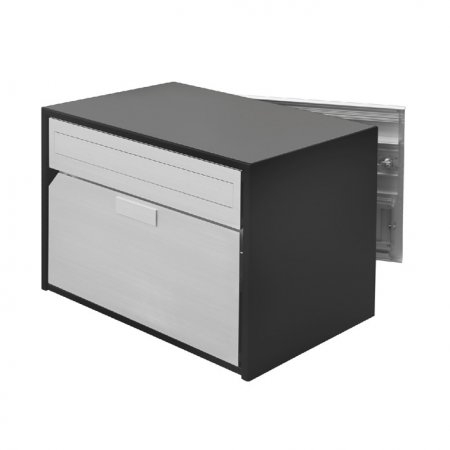 Briefkasten Alu 300 in RAL 9006 Weissaluminium, Front eloxiert, flach mit Auseckung